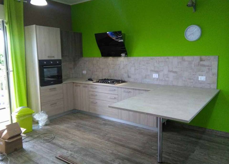 Cucina realizzata in legno chiaro
